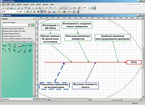 Когда возникает необходимость нарисовать какую-либо схему, пожалуй, многие сразу вспоминают о Visio — многофункциональном конструкторском пакете компании Microsoft, помогающем разработать как чертеж глобальной городской компьютерной сети, так и дизайн-проект квартиры. Но, к сожалению, для работы с интеллект-картами данная программа неудобна. Она рисует статичные схемы. Сложно вдохнуть в них жизнь, заставить «заиграть». Кроме того, ее схемы не обладают интерактивностью — нельзя встроить ни гиперссылку, ни скрытый комментарий.