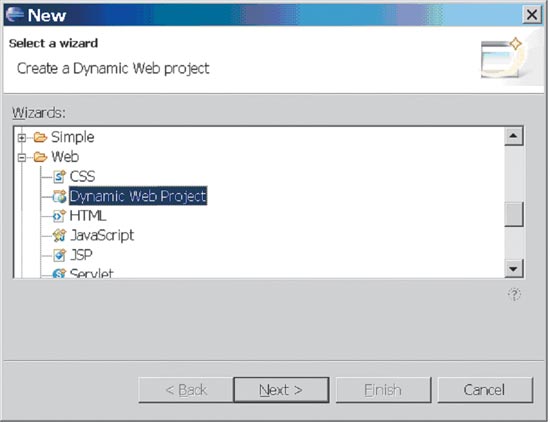 Почему в первой статье, посвященной WebSphere Community Edition, речь идет о создании веб-приложения? Да очень просто — в мире J2EE создание веб-приложения требует от разработчика минимальных усилий (а также минимальных знаний в области J2EE-технологий). По сути все необходимое для создания такого приложения будет сгенерировано Экспертами, входящими в состав Eclipse. Как простейший пример лучше всего использовать JSP-документ. В качестве клиента выступает стандартный браузер.