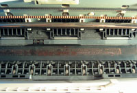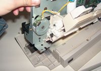 Часто бывает, что лист застрял, а печать уже ведется. Это происходит из-за малого числа датчиков бумаги — в BJC-2000 он всего один (да больше-то и не надо). В общем, чистим влажной ваткой и эту область тоже (рис. 16).