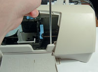 Конструкция BJC-2000 значительно проще, чем у лазерного принтера. Перевернув его вверх дном, вы увидите отметки, где стоят четыре нижние защелки. Еще две расположены под крышкой (рис. 6).