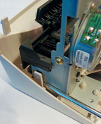 Теперь собираем принтер. При надевании верхнего кожуха убедитесь, что защелки LPT-порта зашли в отверстие корпуса (рис. 12). Затем остается сбросить сервисный сигнал и проверить работу принтера.