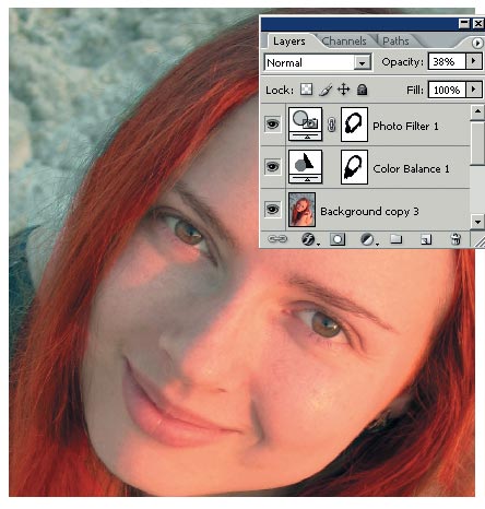 | Рис. 2. Работа с корректировочными слоями над цветом лица |