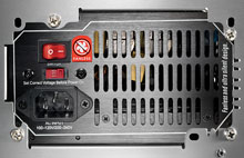 - Проверьте, соответствует ли установка переключателя напряжения на задней стенке блока питания напряжению в сети.