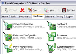 - Sandra Professional 2007 (30 долл. и выше; имеется бесплатная облегченная версия Sandra Lite; www.sisoftware.net) выдает подробные сведения о BIOS, наборе микросхем системной платы, разъемах PCIe и т.д. Программа также в состоянии провести суровое испытание на отказ (для проверки того, не выйдет ли тот или иной компонент из строя) и проанализировать производительность.