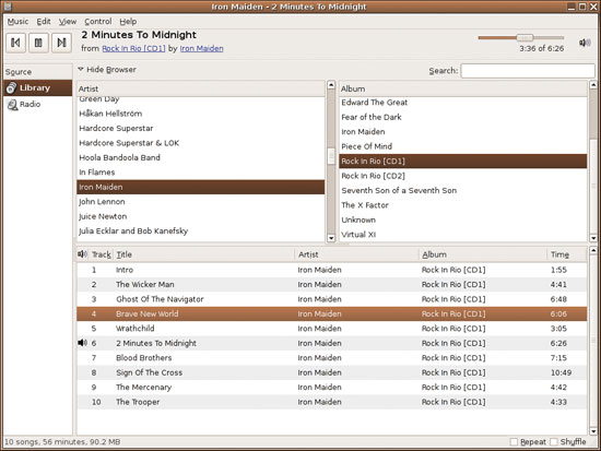 | Рис. 3. Rhythmbox: хорошо настраиваемый и понятный интерфейс |