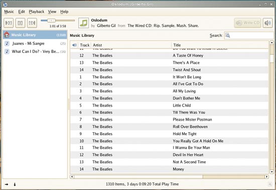 Справа вы увидите кнопки регулятора громкости и записи дисков. Последняя позволяет создать аудиодиск на основе выбранного списка воспроизведения – согласитесь, что это очень удобно. Проиграть в Banshee купленный музыкальный диск тоже не составит труда. В левой панели появится значок аудиодиска, и плеер автоматически даст запрос в сетевую базу данных компакт-дисков. Если певец или группа хоть как-то известны миру, то с вероятностью 90% вы увидите правильные названия песен в окне проигрывателя. Очень удачно реализована возможность копирования CD. Нажимаете кнопку Import CD, и через считаные минуты все песни уже у вас на компьютере. В зависимости от настроек песни кодируются в формат MP3, OGG или Theora (по умолчанию выставлен OGG). К сожалению, Banshee не способен как следует отображать обложки альбомов (функция работает через раз, что говорит о ранней стадии разработки плеера). Banshee не умеет синхронизировать свою базу данных с вашей фонотекой, поэтому всю музыку нужно «прогонять» через плеер, используя функцию импорта.