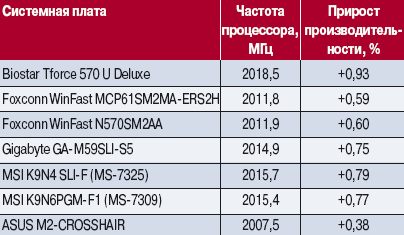 Не секрет, что при наличии мощной двухуровневой системы кэш-памяти внутри процессора значительная часть вычислений происходит без обращения к внешней шине и, значит, без участия системной платы. На скорость обмена с памятью в наибольшей степени влияют ее же (памяти) характеристики. Следовательно, если системная плата спроектирована грамотно, ее вклад в производительность не слишком велик, а если разработчик допустил ошибки, то, напротив, снижение производительности может оказаться очень значительным. Поэтому нередко на расстановку мест при проведении сравнительного тестирования могут оказать влияние даже доли процента, которые проще всего получить, увеличив частоту системной шины. К тому же такой подход приводит к повышению производительности во всех приложениях, поскольку возрастают частота работы и производительность как центрального процессора вместе с расположенной в нем кэш-памятью, так и оперативной памяти. Значит, «подкручивание» режима работы тактового генератора и синтезатора частот вызывает увеличение даже составляющей производительности, не зависящей от конструкции системной платы. Следует признать, что этим в различной степени грешат все изготовители.
