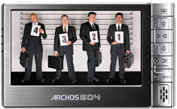 Устройство выполнено абсолютно в том же стиле, что и Archos 404, только экран и соответственно размеры корпуса у него побольше. Расположенный на передней панели встроенный динамик особым качеством не радует. Экран с небольшой зернистостью имеет глянцевое покрытие — с одной стороны, это улучшает восприятие изображения, но, с другой, любой источник света дает сильные блики. В отличие от большинства конкурентов Archos 604 оснащен съемной батареей, так что для ее замены совершенно необязательно ехать в сервис-центр. Плеер определяется компьютером как внешний жесткий диск — установка драйверов не требуется.