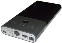 Помимо основного разъема на торце размещен еще один — в формфакторе USB. Он предназначен для питания карманных компьютеров, сотовых телефонов, MP3-плееров и других «девайсов» с напряжением 5 В и током потребления до 1 А. Интересно то, что такой разъем работает независимо от основного, т.е., например, можно запросто одновременно работать на портативном ПК и заряжать мобильный телефон. Это очень удобно, но, к сожалению, USB-переходники в комплект не входят.