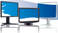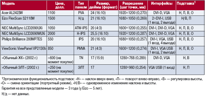 Собирая тестовые образцы для этого обзора, мы не ставили перед производителями строгих условий относительно того, что понимать под профессиональной моделью, — каждый из них прислал такую, какую нашел соответствующей. Все компании сошлись в том, что это должен быть 20—25-дюймовый монитор с хорошей цветопередачей и большим углом обзора (178°). Этому удовлетворяют матрицы типа IPS и PVA. У них не самое низкое время отклика, но для статичных изображений вполне хватает, к тому же в некоторых представленных моделях можно включить режим «разгона» матрицы (overdrive). И что немаловажно для нашей цели, эти матрицы обеспечивают истинный 8-битный цвет вместо 6-битного с растрированием, применяемым в дешевых моделях. Все представленные дисплеи имели матовое антибликовое покрытие.