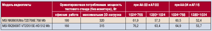 Аппаратная конфигурация тестового стенда в корпусе Compucase LX-7X31BS была следующей: ЦП Intel Core 2 Extreme X6800, системная плата Intel D975XBX, двухканальное ОЗУ на базе модулей Samsung PC2-6400 (2Ё512 Мбайт, DDR2, 800 МГц, 5-5-5-18), жесткий диск WD Caviar SE16 WD5000KS (SATA 2, 7200 об/мин, 500 Гбайт), оптический DVD-привод TEAC DV-516, блок питания Thermaltake Pure Power-680APD. Энергопотребление системного блока (без монитора) контролировалось сертифицированным прибором учета электроэнергии «Меркурий 200.02» (классы точности 1 и 2).