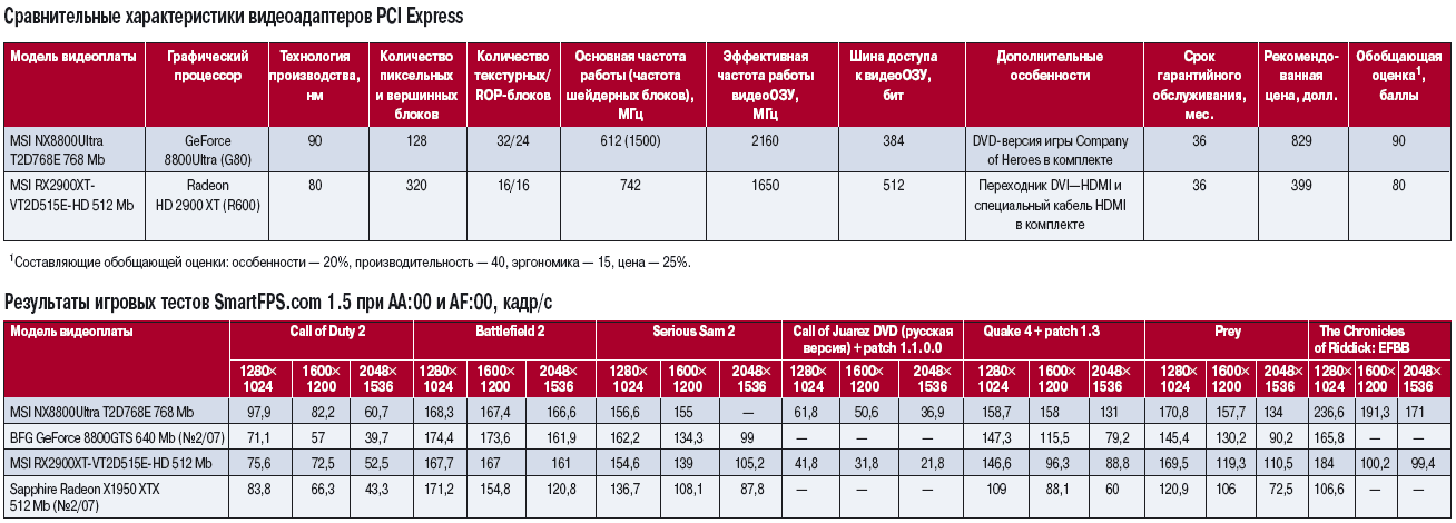 Но есть один нюанс, о котором нельзя забывать: рекомендованная цена 3D-ускорителя Radeon HD 2900 XT соответствует розничной стоимости «урезанного» акселератора GeForce 8800GTS 640 Mb и в производительности между этими видеоплатами также наблюдается паритет. В одной половине игровых тестов вперед вырывается MSI RX2900XT-VT2D515E-HD, в другой — BFG GeForce 8800GTS 640 Mb.