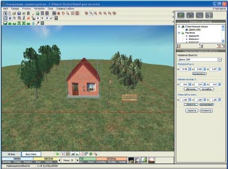 В программе «Планировщик садового участка 3D» можно увидеть виртуальную дачу не только в почти реальном 3D-виде, но и в двумерном плане. Легко переключиться между ними с помощью соответствующих закладок, расположенных в нижней части окна. Еще ниже находится панель, на которой можно изменять время года и суток. В «Планировщике садового участка 3D», вышедшем в серии X designer, эта функции, видимо, весьма важна, поскольку предстоит проектировать не помещение, а окружающую территорию.
