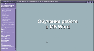 Оба продукта схожи по дизайну и устройству. Каждый курс содержит уроки с тематическими лекциями. Так, «Обучение работе в Word» содержит шесть уроков: «Знакомство», «Редактирование», «Форматирование», «Работа с таблицами», «Работа с внедренными объектами» и «Дополнительные возможности». Все лекции можно слушать как подряд, так и выборочно. Окно программы разбито на две части. В левой происходит выбор раздела и осуществляются самые элементарные управления лекциями — старт/стоп, вход в полноэкранный режим и изменение громкости звука. В правой части отображается лекция с наглядной демонстрацией происходящих процессов. Само содержание лекций рассчитано скорее всего на начинающего пользователя. Нет никаких сложностей и отступлений от нужд элементарного офисного использования –- набора текста, простейшего форматирования и распечатывания на принтере.