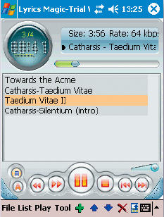 Этот продукт создан для людей, для которых сама музыка важнее звучания. Весь проигрыватель представляет собой встраиваемый в панель «Сегодня» (Today) интерфейс управления и дополнительное окно листа проигрывания. Таких списков воспроизведения можно создать сколько угодно. Программа требует очень мало оперативной памяти. При включении КПК она автоматически загружается и сразу готова к работе, а для перехода к интерфейсу управления надо просто свернуть все окна. Все бы хорошо, если бы список достоинств этим и не заканчивался. Теперь о грустном: во-первых, Mozzak mp3 player требует регистрации (т.е. регистрационного ключа, он не бесплатный). Незарегистрированная версия способна проигрывать лишь одну минуту каждого трека, после чего предложит оформить ключик регистрации, чтобы вы смогли пользоваться столь удобной программой в полной мере. Во-вторых, в данном МР3-проигрывателе отсутствуют какие-либо регулировки звука, кроме громкости, — факт удручающий. В-третьих, программа не воспринимает файлы, названные русскими буквами, в связи с чем озаглавливать песни приходится только латиницей. И наконец, в-четвертых, управлять плеером можно с помощью кнопок на корпусе КПК, но при открытой панели «Сегодня» возникает множество неудобств с открытием не тех меню, а также запуском ненужных процессов. К сожалению, с новыми версиями разработчики не торопятся.