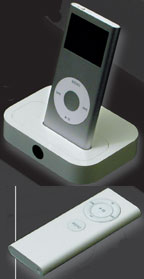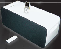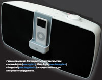 iPod Hi-Fi Эта акустическая система по совокупности характеристик несколько уступает Creative PlayDock i500: нет регулятора баса, пульт дистанционного управления снабжен лишь основными функциями (пауза, вперед/назад, регулировка громкости, меню), отсутствует выход для наушников. На корпусе располагаются две сенсорные кнопки регулировки громкости. В то же время качество звука оказалось несколько выше, в частности, басы воспроизводятся чуть более четко. К сожалению, плеер устанавливается неустойчиво и при нажатии на его кнопки порой теряется контакт с колонками, что может сильно раздражать. Система способна функционировать автономно, с использованием батареек. Динамики закрыты съемной сеткой.