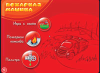Интересны игры и в разделе «Пожарная машина». В первой требуется, передвигая четыре пожарные машины по клеткам, сначала не допустить перемещения огня к городу, а затем локализовать его. Во второй необходимо попарно открыть одинаковые языки пламени, а в третьей — подобрать цвет, смешивая палитру из красной, синей и желтой краски.