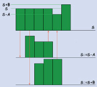 Представим себе биллинговую систему оператора сотовой связи на базе мощного многопроцессорного сервера. Не удивительно, если в такой системе списание средств с лицевого счета клиента за предоставленные услуги будет осуществляться одной нитью программы, а зачисление на счет клиентских платежей — другой. Первую операцию можно записать в виде: S:= S — A, где S — сальдо лицевого счета на момент выполнения операции, A — стоимость совершенных телефонных разговоров. Процессор выполнит такую операцию в три этапа: сначала будет получено исходное значение переменной S, затем оно будет уменьшено на величину A, после чего результат будет записан в ячейку S. Аналогично выполняется вторая операция: S:= S + B, где B — сумма внесенных клиентом средств. Допустим, что через некоторое время после оплаты через кассу банка клиент совершит телефонный звонок. Поскольку зачисление клиентских платежей на лицевой счет по ряду объективных причин происходит с некоторой задержкой, нельзя исключать вероятность того, что обе операции — зачисления и списания — практически одновременно начнут выполняться в биллинговой системе. Предположим, что первой выполняется операция списания и с отставанием на один такт за ней идет операция зачисления (см. рисунок). После выполнения трех тактов операции списания текущий баланс счета станет равным S—A, однако четвертый такт изменит это значение на S+B.