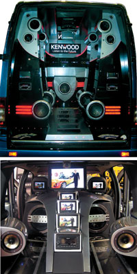 Компании — производители оборудования по традиции демонстрировали не только сами устройства, но и варианты их установки в автомобилях. Концепт-кары, нашпигованные колонками, проигрывателями и ЖК-экранами самых разных размеров, производили незабываемое впечатление и на специалистов по цифровой технике, и на умудренных опытом водителей, и на неискушенных пассажиров. Так что, если у вас есть средства, желание и необходимость, можете и вы превратить своего железного коня в передвижной мультимедийный центр.