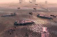 Конечно, все новшества полезны и интересны, но основной козырь разработчиков новой игры — графика. Это сразу же бросается в глаза, потому что немногие из проектов стратегического жанра обладают столь превосходным графическим оформлением. И уж точно совсем мало игр могут сравниться с описываемым детищем EA games. Графический «движок», начальная версия которого встречалась еще в Emperor: Battle for Dune, показал здесь, на что он способен. Таких взрывов, огня и разрушений нет ни в одной «стратегии».
