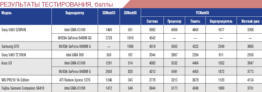 Редакция выражает благодарность представительствам компаний ASUSTeK, MSI, Fujitsu Siemens Computers, Samsung, Sony за присланные на тестирование образцы ноутбуков.
