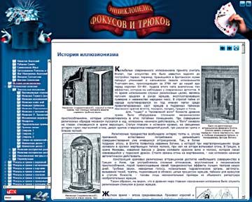 Гиперссылок в сборнике нет, как, впрочем, нет и таких присущих лучшим современным компьютерным изданиям свойств мультимедийности, как анимация, видео, звук. Невысокое качество иллюстраций и отсутствие возможности увеличить для просмотра их размер порой мешают понять, в чем, собственно, суть фокуса или как он организован, если дело касается объяснения трюков. Невозможно изменить и размер шрифта; думается, среди пользователей найдется немало тех, кому это захочется сделать. Зато копировать и печатать статьи просто и привычно. Щелчком правой кнопки мыши вызывается контекстное меню с соответствующим набором функций. Кроме того, для вывода статей на печать в правом верхнем углу окна статьи предусмотрена специальная кнопка.