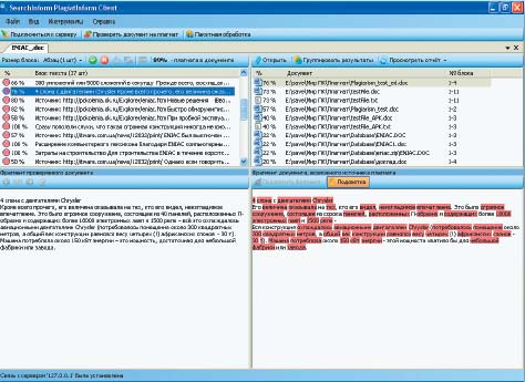 Конечно, если необходимо во что бы то ни стало определить наличие заимствований, можно выполнить это и вручную. Но что делать, если приходится регулярно оценивать потоки материалов, например рефераты целого курса? В этом случае неплохо иметь под рукой инструмент, хотя бы частично решающий такую задачу. К счастью, нужные средства уже есть. Из претендующих на полноту и серьезность можно назвать два — пока еще бесплатную интернет-систему «Антиплагиат» и довольно мощное профессиональное решение «ПлагиатИнформ» компании «СофтИнформ», рассчитанное на использование в вузах и стоящее немалых денег. Впрочем, с ознакомительной версией продукта можно бесплатно работать в течение 30 дней.