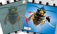 Телефоном Sony Ericsson K790i я сделала в пасмурную погоду фотографию осы, залетевшей между рамами окна. Обрабатывала в Adobe Photoshop CS2 следующим образом: автоматическая тоновая коррекция; исправление кривых яркость — контраст; замена довольно холодного цвета головы более теплым; разделение слоев; замена фона; изменение «прически»; размытие; добавление фрагментов (телефон, сумочка и т. п.); окончательная цветовая коррекция.