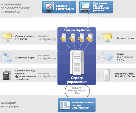 В структуре ABBYY Recognition Server 2.0 выделяются три основных компонента.