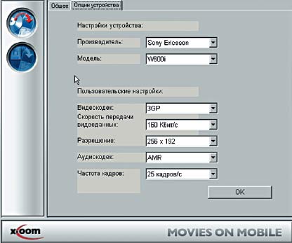 Возможности «Агента домашнего видео» гораздо шире. Для устройств всех видов имеется широкий набор предустановленных вариантов сочетания кодеков/разрешения/результирующей скорости потока. Предусмотрен и режим автоматического копирования конвертированных файлов на целевое устройство. Есть база характеристик мобильных телефонов, смартфонов и КПК, что позволяет выбрать, скажем, поддер-живаемое разрешение из нескольких предложенных вариантов.