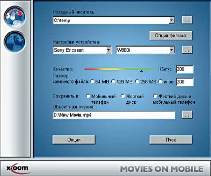 Рассмотрим версии пакета для настольного ПК и ноутбука, для КПК и для мобильных телефонов вкупе со смартфонами. Во всех трех случаях основная задача программы — конвертация исходных видеоданных в «съедобный» для целевого устройства формат. Для ПК чаще всего требуется перенести содержимое DVD в файл MPEG-4 или WMV. Для мобильных устройств спектр целевых форматов значительно шире—3GP, H263, всевозможные вариации на тему MPEG-4/DivX. Ситуация с гаджетами усложняется из-за различных поддерживаемых разрешений и мощности процессора, зачастую неспособного декодировать видеофильм с высокой скоростью потока. Начинающего нередко пугает подобное изобилие вариантов, и он просто не желает разбираться с мобильным видеорядом. Если в комплект мобильного устройства входит ПО, то оно способно помочь, однако его функции, как правило, весьма примитивны.
