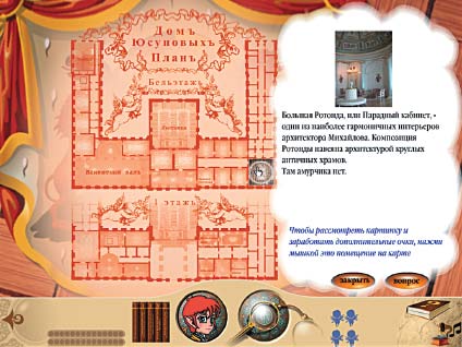 К этому делу подключили и компьютер: компания «МедиаХауз» стала издавать серию «Загадки истории России». Входящие в нее диски, по крайней мере два уже вышедших — «Тайна Николаевского дворца» и «Тайна бальной комнаты (Первый бал Зины Юсуповой)», — позиционируются как игры. Но помимо различных игр-миссий оба продукта содержат массу дополнительной информации. Это и виртуальные экскурсии по дворцам (Николаевскому и Юсуповскому), и история рода Юсуповых, и сведения о русско-турецкой войне, и история женского образования в России…