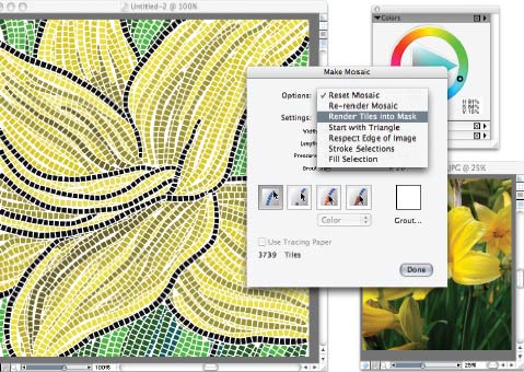 И вообще надо сказать, что для «рисования мозаикой» вам потребуются только палитра Make Mosaic и палитра цвета Colors.
