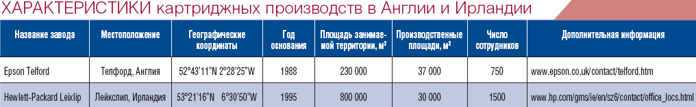 Картриджи Epson для струйной печати производятся на пяти заводах, находящихся в разных частях мира. В Россию, как, впрочем, и во все европейские страны, их поставляют прямо из цехов завода Epson, расположенного в пригороде английского города Телфорд (Telford). Это примерно в 225 км к северо-западу от Лондона, в графстве Шропшир (Shropshire).