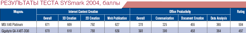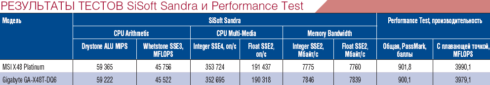 Таблица. Результаты тестов SiSoft Sandra и Performance Test
