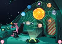 Итак, перед началом действий дается описание проблемы, которую предстоит решить. Мощная вспышка на Солнце нанесла большой ущерб космическим исследовательским станциям, находящимся на шести планетах. «Розовому» герою и юному пользователю предстоит устранить поломки. За каждой планетой закреплено определенное задание, и когда маленький астронавт выполнит его, то ему будет предложено прослушать сведения об этом небесном теле. Причем информация изложена в доступной форме и сопровождается красочными иллюстрациями. Несмотря на то что в игре задействовано только шесть планет, пользователь может познакомиться со всеми восемью планетами Солнечной системы. Плутон, ранее известный как девятая планета, видимо, не вошел в игру из-за того, что был лишен такого статуса в 2006 г.