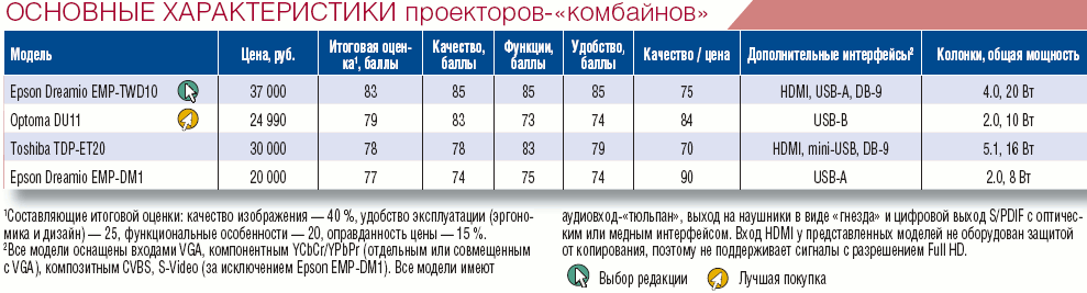 Поскольку футбол — основная тема номера, то мы обновим результаты весеннего хит-о-смотра по проекторам-«комбайнам»: когда отгремят баталии Евро-2008, можно будет спокойно посидеть на даче, посмотреть DVD с матчами. В будущем советуем производителям встроить в многофункциональные проекторы еще и ТВ-тюнер. А то для просмотра прямых эфиров приходится прикладывать чуть больше усилий, чем просто нажать кнопку «включить».