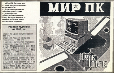 «Мир ПК–диск» в 1992 г.