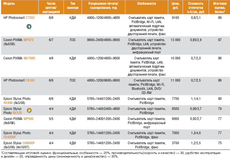 Этот аппарат является представителем нового поколения многофункциональных устройств компании Canon, использующих технологию PgR. Суть ее заключается в том, что для достижения лучших по сравнению с предыдущими поколениями устройств оптических (контрастность, устойчивость к выцветанию) и динамических характеристик здесь применяются пигментные чернила. Но прежде чем они попадут на носитель, устройство покрывает его специальными прозрачными чернилами, которые выступают в качестве подложки, обеспечивая фиксацию пигмента на бумаге. По словам производителя, это нововведение позволяет добиться требуемых свойств даже на недорогой офисной бумаге. Аппарат выглядит заметно более громоздко по сравнению с остальными участниками обзора прежде всего за счет использования в этой модели автоматического податчика документов (незаменимая вещь, если требуется отсканировать или скопировать большой объем документов формата А4) да модуля автоматической двусторонней печати, ставшего обязательным атрибутом практически всех моделей струйных МФУ и принтеров Canon. Беспроводными интерфейсами, как аппарат HP, он не радует, но есть возможность интеграции его в локальную проводную сеть с поддержкой всех функций. Встроенный дисплей высоким качеством не отличается — он имеет довольно низкое разрешение и посредственную цветопередачу. Опыт работы со считывателем карт памяти также можно назвать неудачным, скопировать данные на ПК можно, а вот записать или удалить нельзя. Да и по обеспечиваемой скорости он заметно отстает от HP и Epson. Этот аппарат мы бы не стали рекомендовать рассеянным пользователям: забыв карту памяти в считывателе, ее можно потом долго искать, поскольку крышка у него непрозрачная. Кроме того, подход к нему явно затруднен нависающей панелью управления.