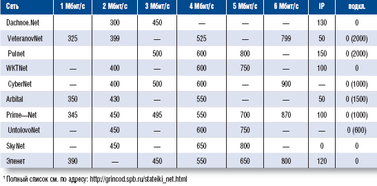 Сколько же стоит Интернет в Питере? Данные о первой десятке операторов приведены в табл. 1. (Более полную информацию можно получить по адресу: http://grinkod.spb.ru/stateiki_net.html).