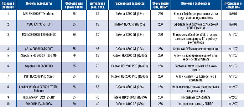 Видеорейтинг плат ценовой категории до 100 долл. (сентябрь 2008г.)