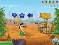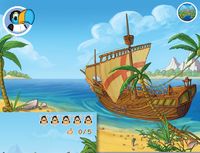 Навыки Шерлока Холмса здесь не потребуются. Понадобится другое — знание английского языка. В одном из испытаний надо поразить «правильные» воздушные шары, т.е. те, номера которых по-английски будет называть капитан. В другом — быстро и точно выполнить команды, также звучащие на английском. В третьем — правильно разложить разбросанные вещи… Успешно выполнишь задание — получишь ту или иную похищенную мартышками деталь. Какую именно, подскажет интерактивная карта острова (она же — главное меню). Щелкнув по кораблю, изображенному на карте, можно узнать, сколько еще предметов предстоит найти.