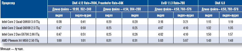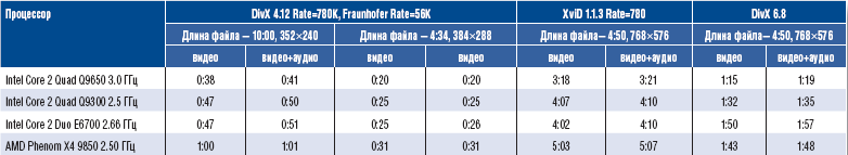 Тестовая система имела следующую конфигурацию: центральный процессор — Intel Core 2 Quad Q9650 и Q9300, Duo E6700, AMD Phenom X4 9850; оперативная память — 1024 Мбайт DDR2 SDRAM 800 МГц (два модуля Corsair CM2X512-8500 по 512 Мбайт); системные платы — Intel DG45ID для процессоров Intel и Foxconn A79A-S для процессора AMD; видеосистема — MSI RX3870 (ATI Radeon HD 3870) 512 Мбайт DDR4; жесткий диск — Western Digital WD2000JD-00HBB0, 200 Гбайт, SATA-150, 7200 об/мин, 8 Мбайт; привод DVD-ROM — Teac DV-516GA; блок питания — HIPER type M 630 Вт.