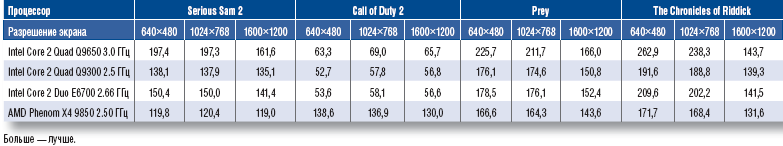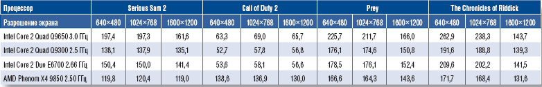 Таблица 1. Результаты игровых тестов на основе SmartFPS.com: Serious Sam 2, Call of Duty 2, Prey и The Chronicles of Riddick, кадр/с