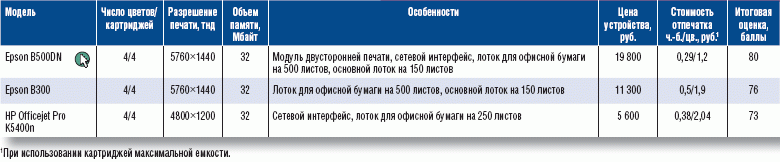 Эти аппараты отличаются высокой производительностью, позволяют использовать их в сети, а также имеют ряд дополнительных возможностей, облегчающих офисный труд. Приобретут ли эти модели популярность, сказать пока трудно — еще бытует устойчивое мнение о дороговизне отпечатков струйных устройств. Впрочем, чтобы снизить этот параметр, производители, судя по представленным в нашем обзоре аппаратам, пошли на беспрецедентный шаг по повышению емкости картриджей и снижению стоимости расходных материалов. Насколько же удачными и необременительными для кармана покупателя получились эти устройства?