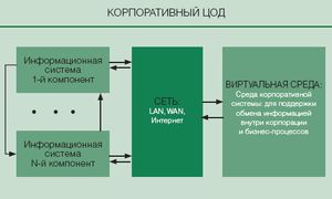 Основная особенность концепции корпоративных ЦОД состоит в том, что такой центр призван решать кроме связных задач и более широкий спектр корпоративных, главным образом относящихся к сфере управления или основных бизнес-функций. Если сетевые ЦОД выполняют системные функции по поддержанию взаимодействия компонентов, составляющих корпорацию, то корпоративные обслуживают функционирование как компонентов, так и корпорации в целом.