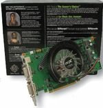 Что касаемо модели ZOTAC, то надпись AMP! Edition подчеркивает экстремальность частотной формулы по сравнению с референсным решением GeForce 9500 GT. Увеличены физические частоты ядра с 550 до 650 МГц и шейдерных блоков с 1400 до 1652 МГц. Эффективная частота памяти GDDR3 стала заметно больше — 1800 вместо 1600 МГц.