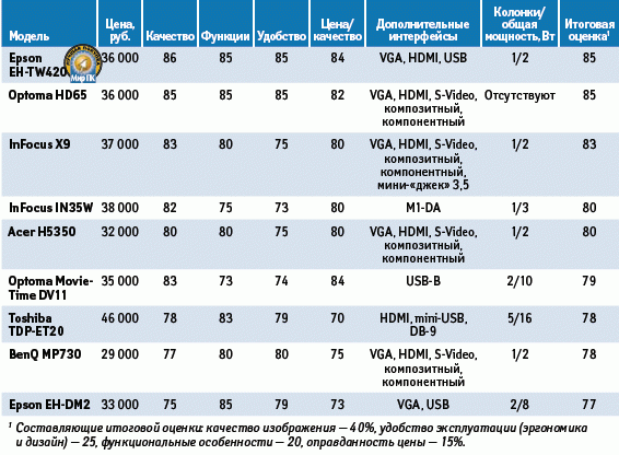 В отличие от представленных выше моделей, применяющих DLP-технологию, этот проектор построен на базе матрицы 3LCD, произведенной самой компанией Epson. Поскольку в данном устройстве используется иная технология, то и эффект радуги, характерный для многих DLP-аппаратов, в этом случае отсутствует, что положительно сказывается при просмотре видеофильмов. Однако и здесь не все так гладко — имеет место легкое виньетирование по углам кадра. В общем, качество установленной оптики могло бы быть и выше. Кстати, предусмотрена возможность коррекции трапецеидальных искажений в пределах 30о.