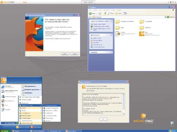 В настоящее время MojoPac функционирует только на компьютерах с операционной системой Windows XP, однако планируется, что вскоре будет обеспечена поддержка Vista. А вот вариантов для ранних версий Windows не предусмотрено.