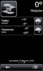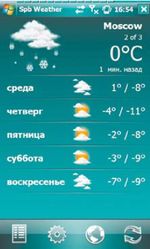 Интерфейс программы Weather компании VITO Technology предельно прост. Как и у Spb Weather 2, он выполнен так, чтобы с ним было удобно использовать пальцы, а не стило. Значки крупные и легко различимые.